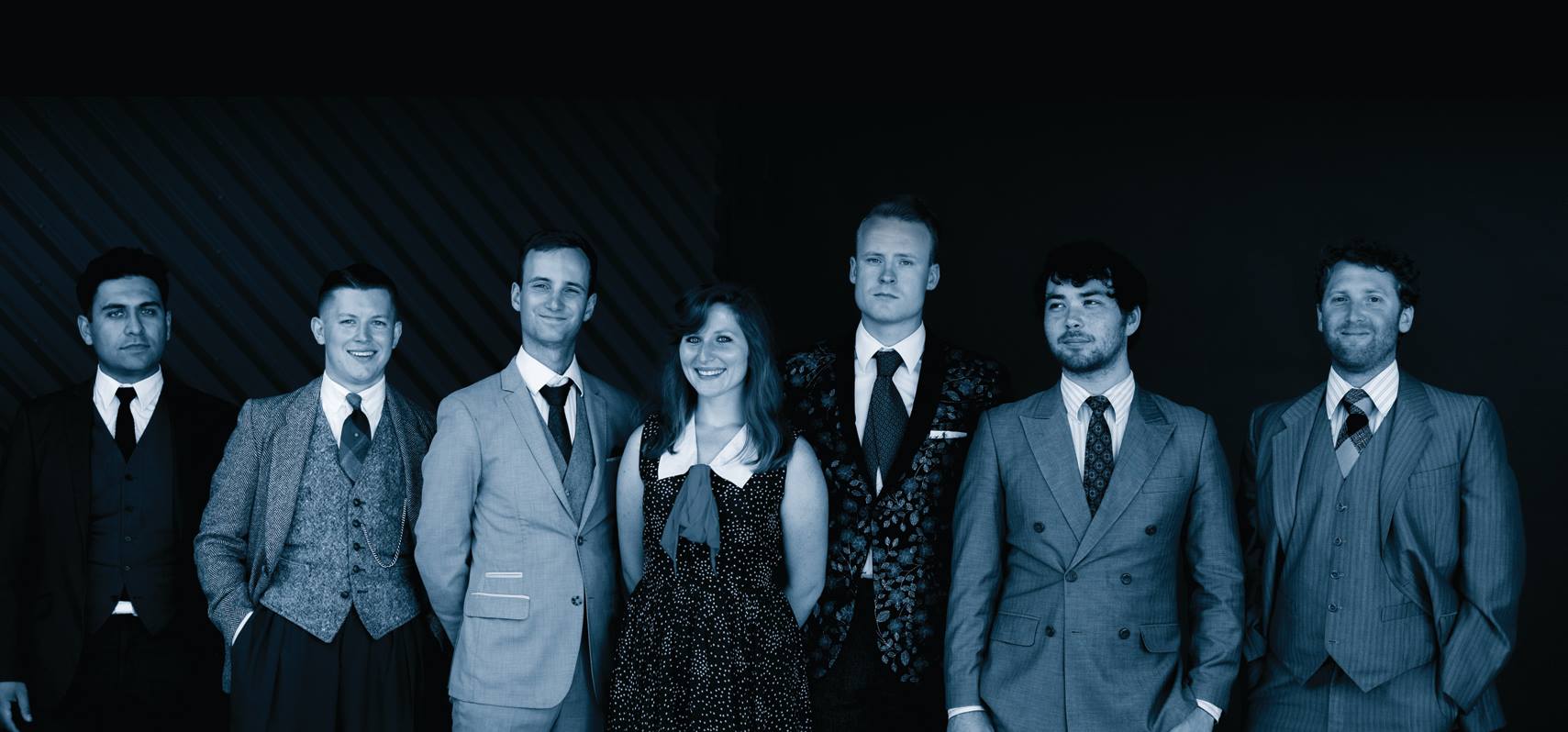 This debonair seven-piece is made up of prolific NZSM graduates Hikurangi Schaverien-Kaa (drums), Emma Wollum (accordion and vocals), Michael Costeloe (trumpet and vocals), Robert Henderson (double bass), Oscar Laven – with hat – (saxophone, clarinet and vocals), Alexander Boulton (Guitar, Banjo), Kaito Walley (Trombone)